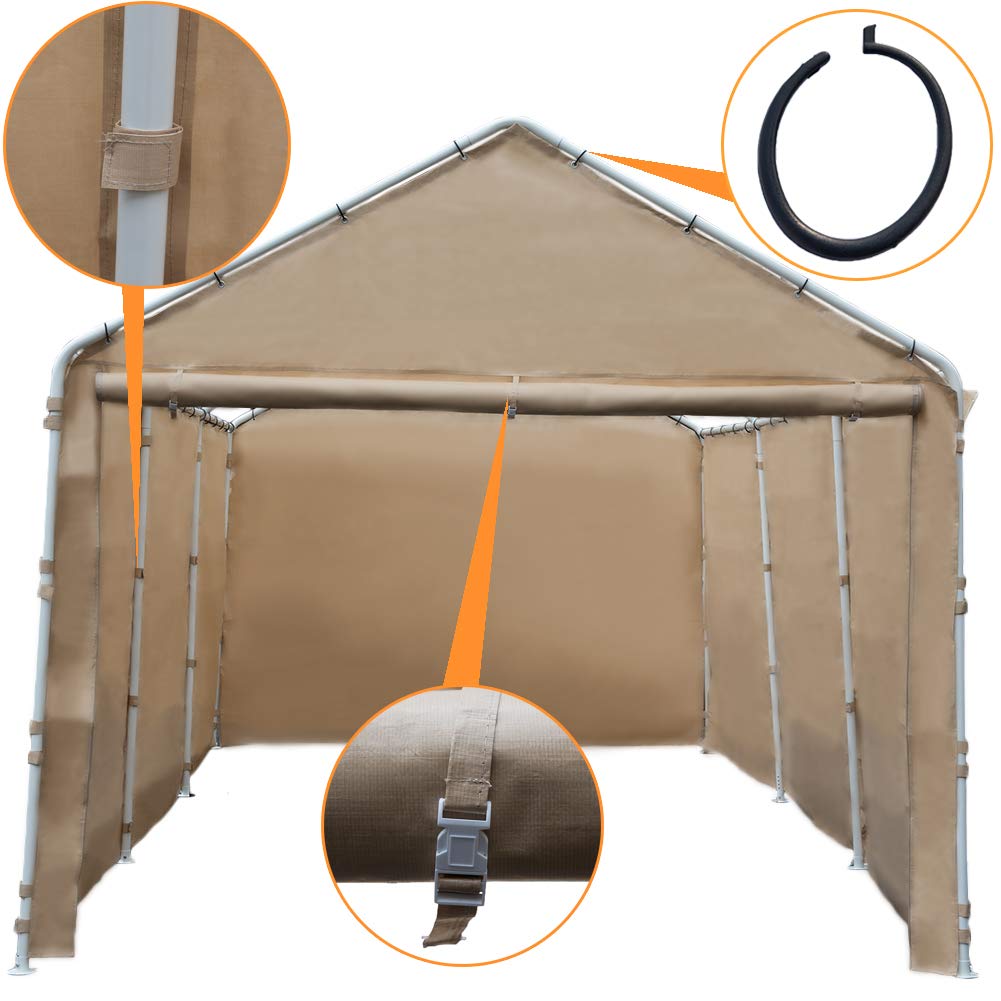 Beige Frame Top Cover Not Included Abba Patio Replacement Cover For 10 X 20 Feet 6 Legs Carport Shelter With Rings