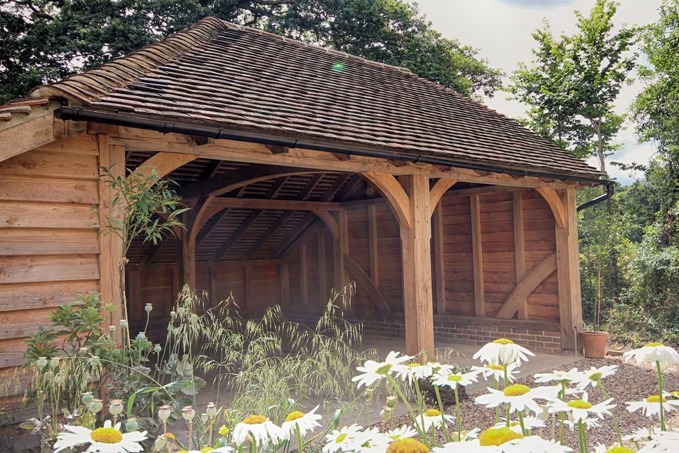 Oak framed carports. Carports are just as strong as a garage and can be made to your own specifications. Or for something a little different an oak framed carport provides shelter for your cars but without the need to allow space for doors. All 100 oak frame buildings that offer practical and cost effective solutions to for beautiful exterior structures. We focus upon creative design craftsmanship sustainability innovation and customer service offering an unrivalled variety of construction packages including frame only contracts and fully project managed and fixed price turnkey services.